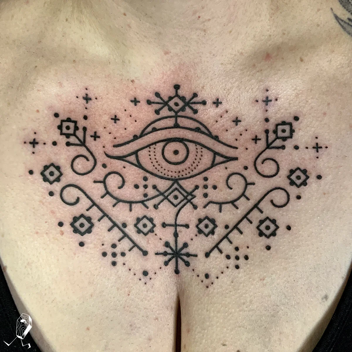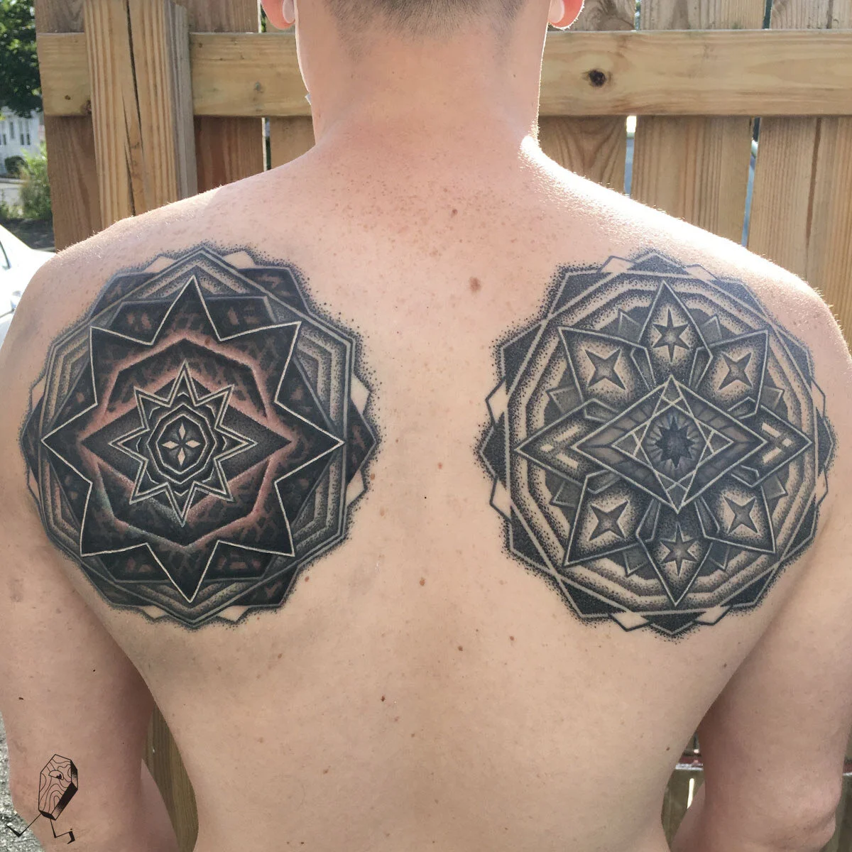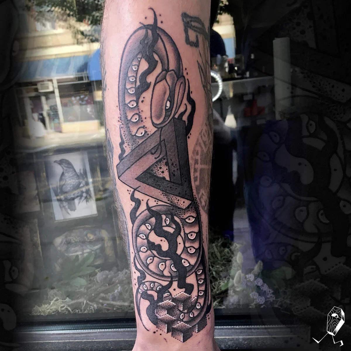 An obsession with tattooing, its lifestyle, its history across countless cultures & centuries, its images, and, most of all, its transformative power fuel my pursuit of this craft. After a decade working in graphic design, I started professionally tattooing in 2016. Today, I am primarily focused on pursuing symbolically-powerful & visionary tattoo work with a technical foundation in strong linework & dotwork shading. My subject matter is inspired by esotericism & the occult, spirituality, the realm of dreams, the psychedelic experience, sacred geometry, and traditional tattoo flash. With intention & care, tattoos can be a deep healing experience or even feel like spiritual armor that can help the wearer in their process of self-actualization. That is the place I strive to approach this work from each day.